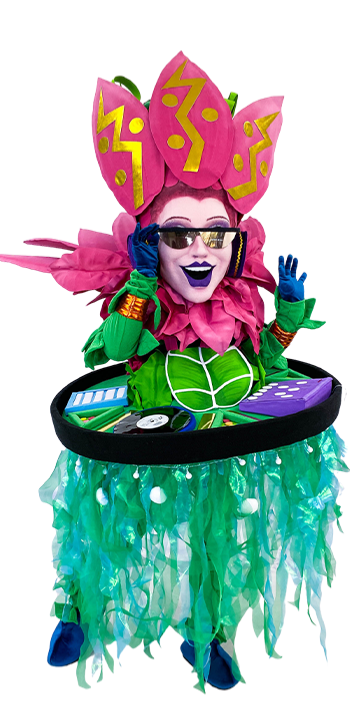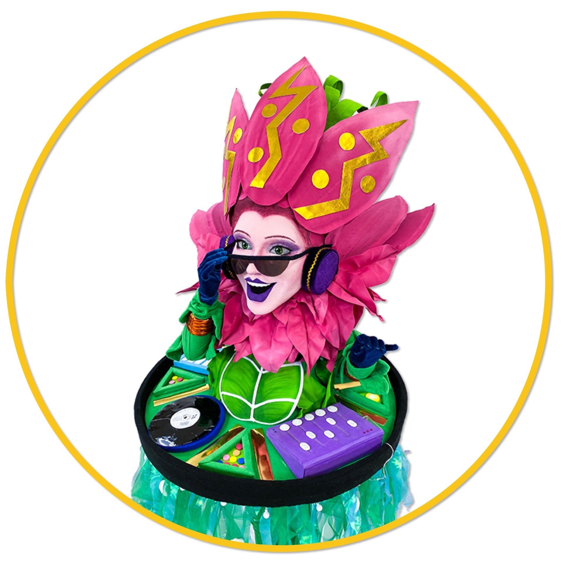 Met haar gigantische bloemkroon, sprankelende glimlach en eigen DJ-tafel vol lichtjes, knopjes en muziekpret, brengt DJ Bloombox een bruisende sfeer naar élk evenement. Of het nu gaat om een festival, winkelcentrum, braderie of familiefeest – waar DJ Bloombox verschijnt, bloeit de vrolijkheid vanzelf op!